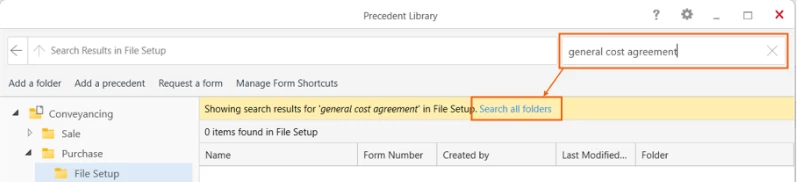 I’m just wondering if it’s possible to do a general search for a precedent without being constricted to a singular precedent folder? As in, if I’m after a precedent, but can’t remember what folder it’s in, is there a way to do a general search?