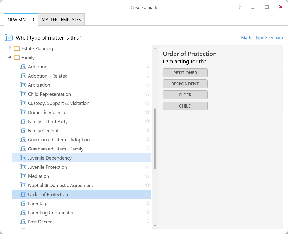 What would the Matter Type be for: