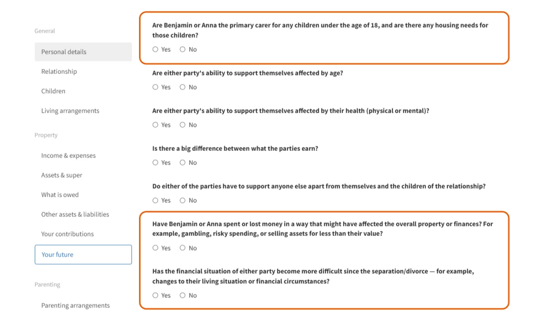 FamilyProperty questionnaires now reflect recent changes to the Family Law Act 1975 (Cth), with new and updated questions covering financial wastage, housing needs, financial hardship, and pets. Pet details can also be added directly to the balance sheet. All captured information flows into your automated documents to support accurate and compliant drafting.