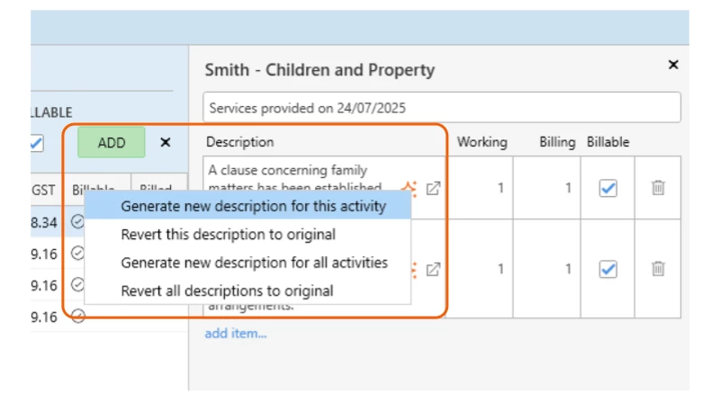- Increase consistency – ensure time entries reflect the same language and formatting across matters.