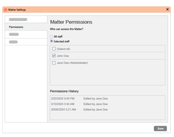 With this update, firm owners will be able to restrict access to matters from other firm owners. It’s an easy way to safeguard confidentiality and reduce risk, especially in matters involving opposing parties or related clients.