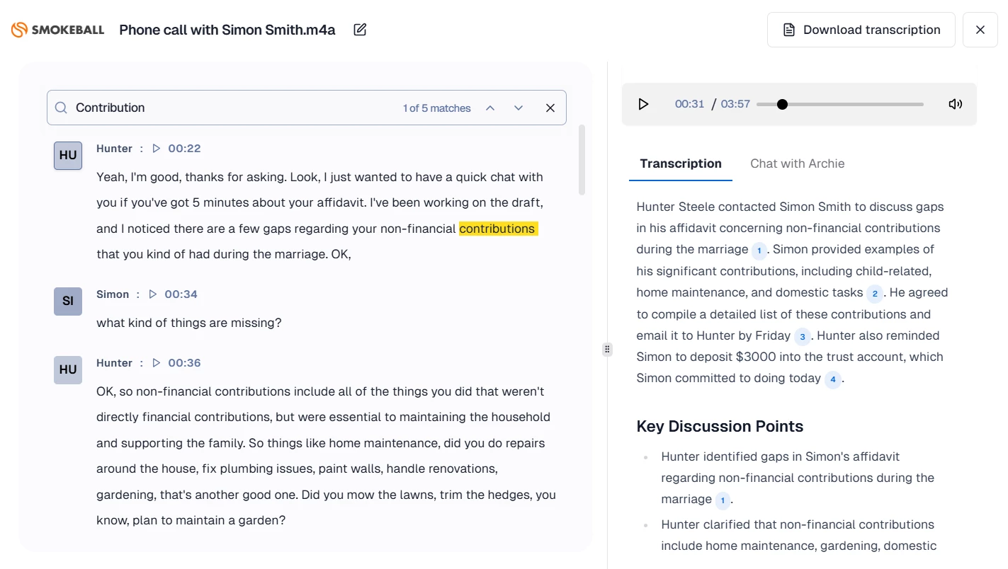 Make your calls and meetings easier to review, revisit and act on with the latest Archie App. Turn audio and video into accurate, detailed transcripts that you can search and ask questions about, complete with concise summaries that surface key points.