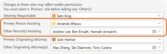 You can now add a Primary Person Assisting, along with multiple Other Person(s) Assisting, giving your firm clearer visibility into who’s involved and how work is shared across leads and matters. Use the Assigned Matters widget to filter by these roles and quickly see what each staff member is working on. You can also leverage these roles in workflows, ensuring tasks are assigned to the right people.